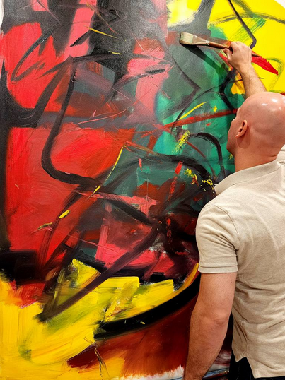 Russell’s engagement with visual art began in early childhood, where drawing and close observation became instinctive disciplines. That early foundation evolved into a highly controlled studio practice grounded in repetition, refinement, and a long-term commitment to painting as a lifelong pursuit. Over time, his work has developed into a cohesive and recognizable visual language that moves fluidly between abstraction and the human figure.